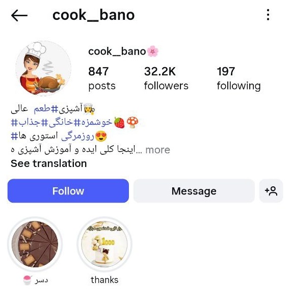 پیج اینستاگرام 32کا – cook__bano